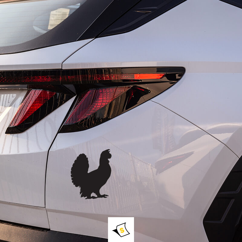 Стикер за кола – ГлухарИзработен от висококачествени и устойчиви на атмосферни влияния материали, този стикер за кола глухар е идеален за украса на автомобила и добавя автентичност и индивидуалност. Ярките цветове и детайлната графика привлекат вниманието и предизвикват усмивки, докато вие задвижвате по пътищата. Превърнете автомобила си в истински шедьовър с този стилен и игрив стикер!